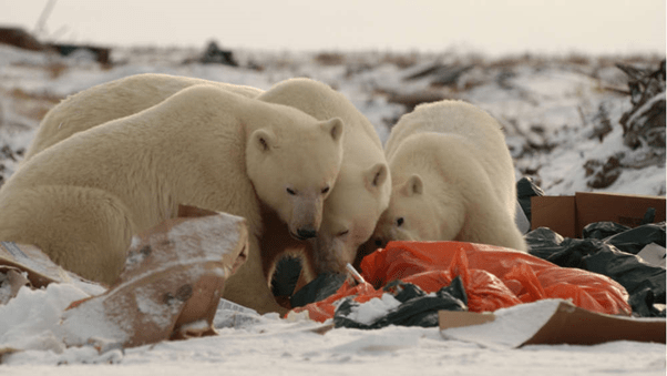 For people in the Arctic who hunt large predators, especially indigenous people, these food sources that historically have been incredibly nutritious and healthy are now a concern in case they are contaminated. It has even been seen that the Inuit in Canada and Greenland who hunt and eat polar bears have higher levels of toxic contaminants in their blood and breast milk compared to those on different diets because of them bio accumulating contaminants which originate in little fish in the sea.