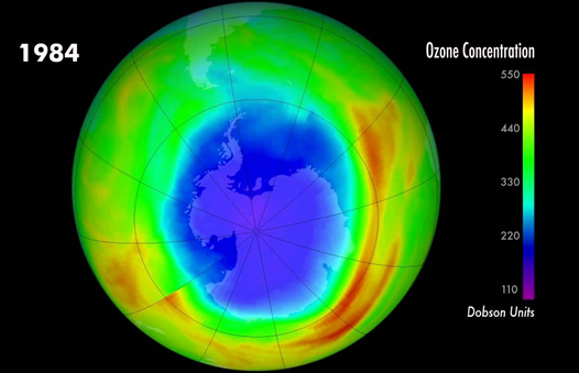 Stratospheric ozone normally fluctuates throughout the year due to changes in temperature, season and the action of winds such as the polar vortex moving air around even high up in the atmosphere. However, in the 1970s some chemists at the University of California published a scientific paper pointing out a bit of an issue. Chlorofluorocarbon gases (CFCs) when reaching the stratosphere were broken down by UV light into a variety of substances including chlorine which destroys ozone. In fact one chorine atom had the potential to destroy over 100,000 ozone molecules.