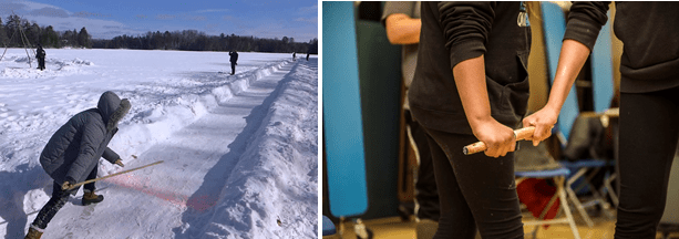 Snow Snake- A stick is thrown low and slides across the ground. The object is to get your stick to slide as far as possible. This improves accuracy, power and skill, essential in the past as these sticks used to have spears on the end and be used to catch small game. Think of it as a sort of ground-javelin.